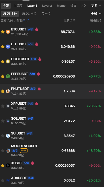 PNUT今天前期剧烈震荡向下,后期,剧烈震荡向上,尾盘又出现急速拉升。短周期策略,一定要遵守,不然会死的很惨,杠杆不要超过5倍,今天已经爆仓一次,虽然后面做回来了,还盈利了但真的及其危险。